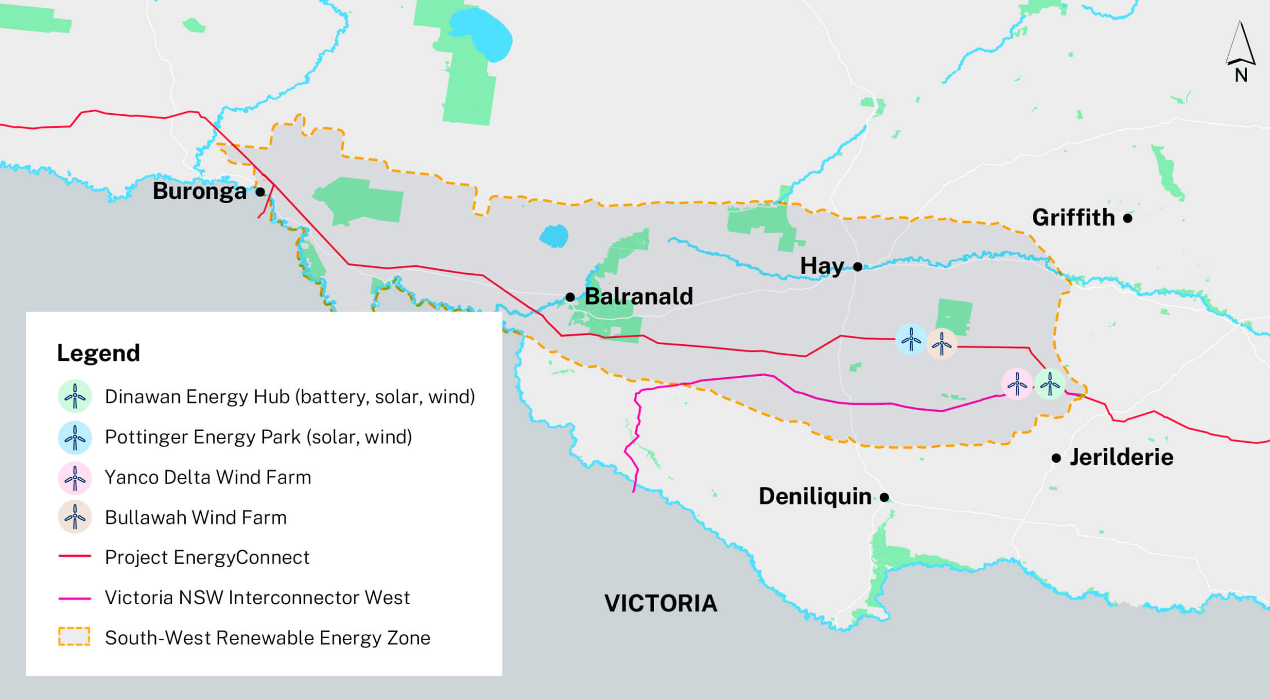 EnergyConnect) ) in NSW and Western Renewables Link in Victoria. The preferred option runs from Transgrid’s Dinawan substation north of Jerilderie in NSW to new substations proposed near Kerang and Bulgana in Victoria.